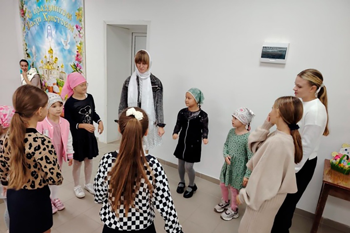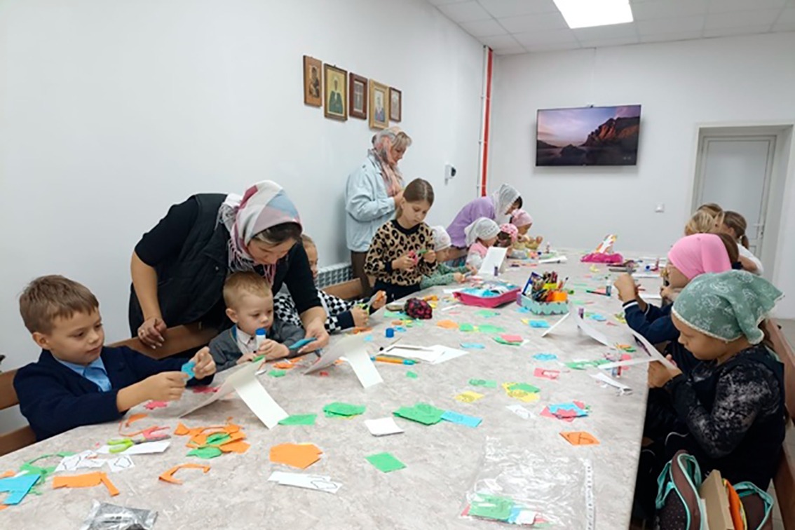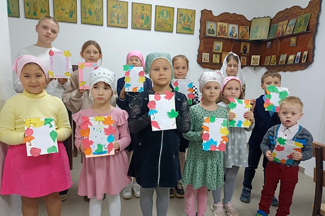 После этого занятия в воскресной школе проходят в привычном для детей формате по воскресеньям. Так, 21 сентября, в день Рождества Пресвятой Богородицы, преподаватель Александр Медведев рассказал воспитанникам об истории и значении праздника.